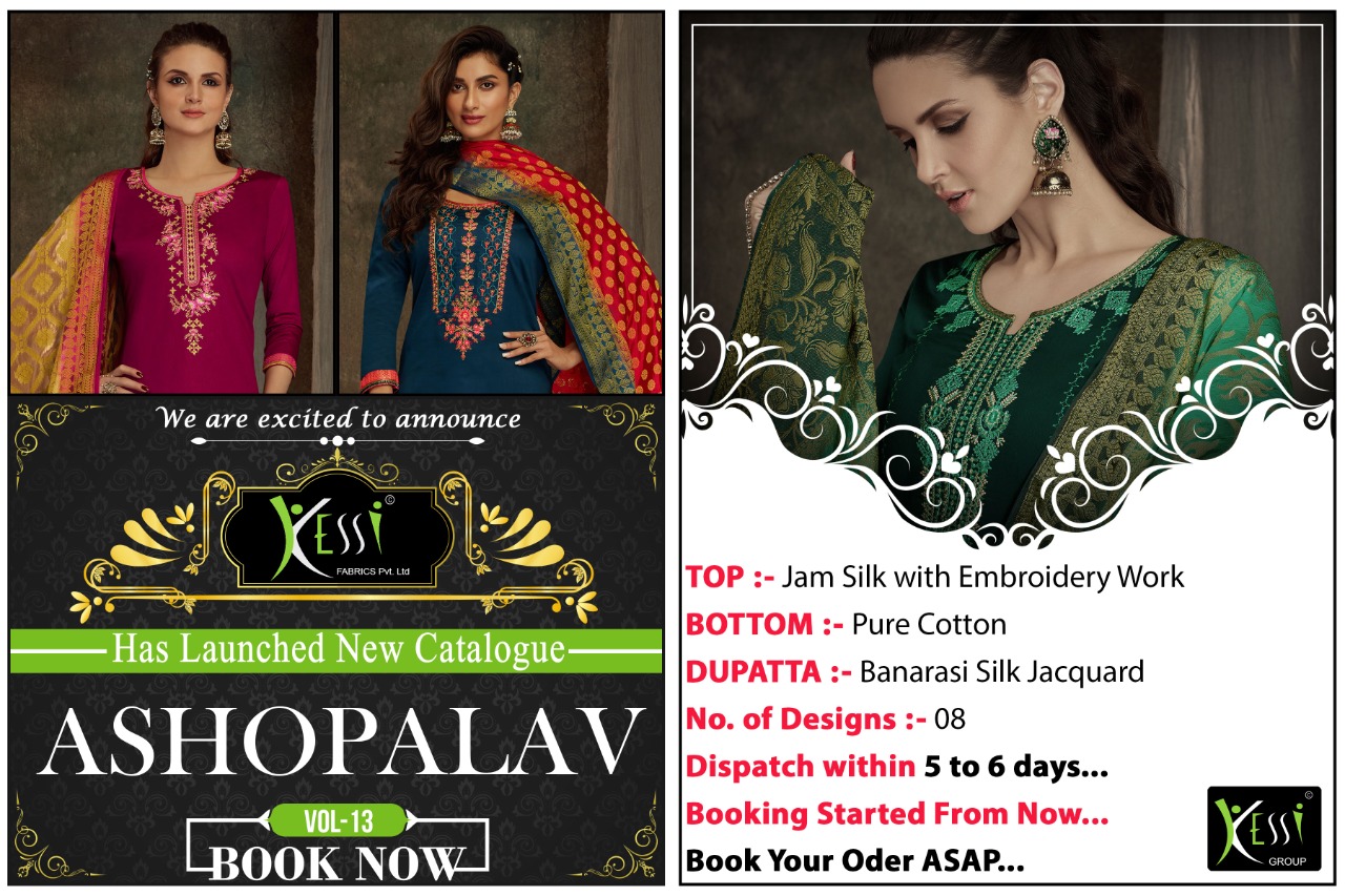 | Other Details : | Kessi Fabrics Pvt. Ltd. has launched Catalog name : Asopalav Vol – 13 Fabric Details |