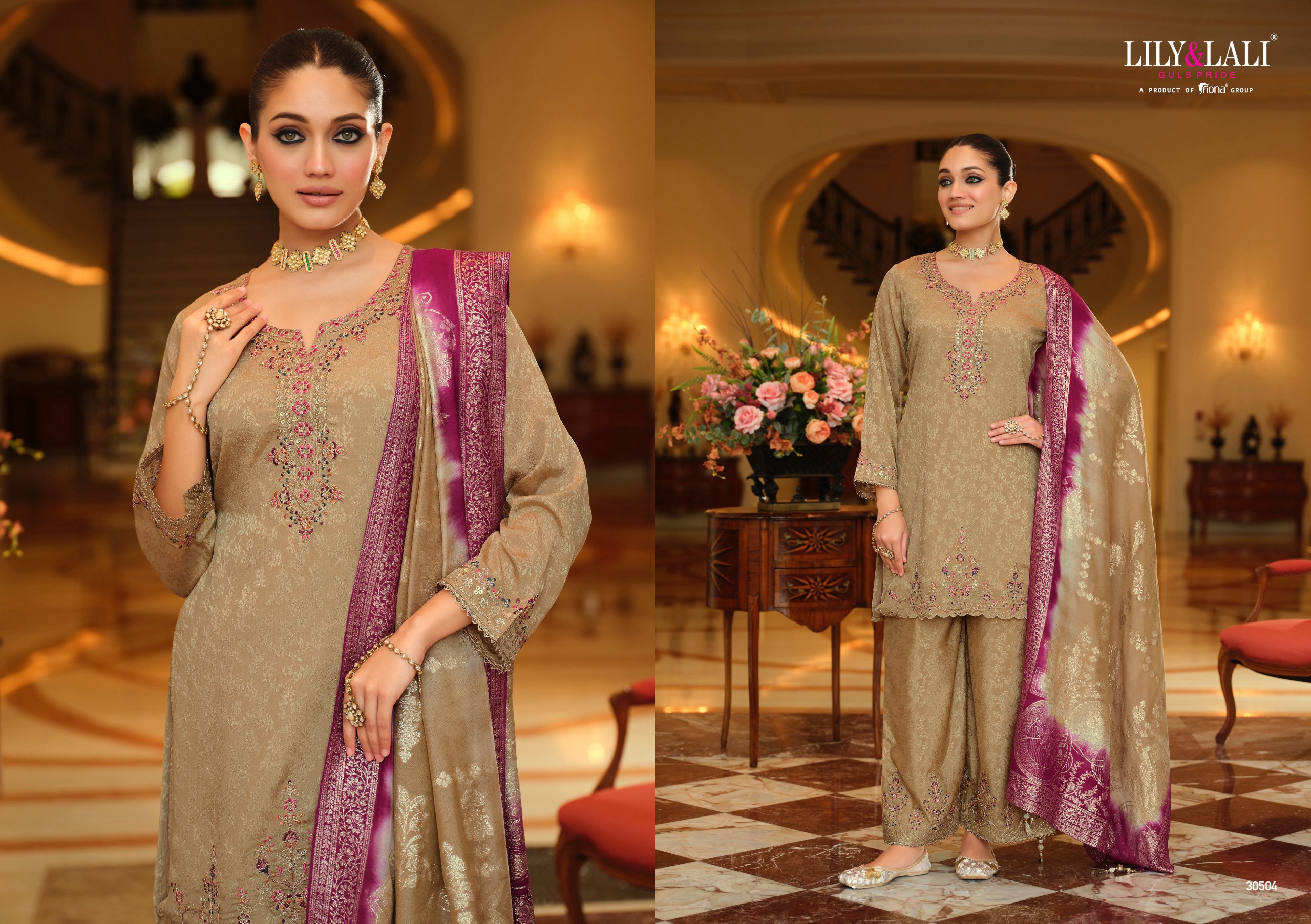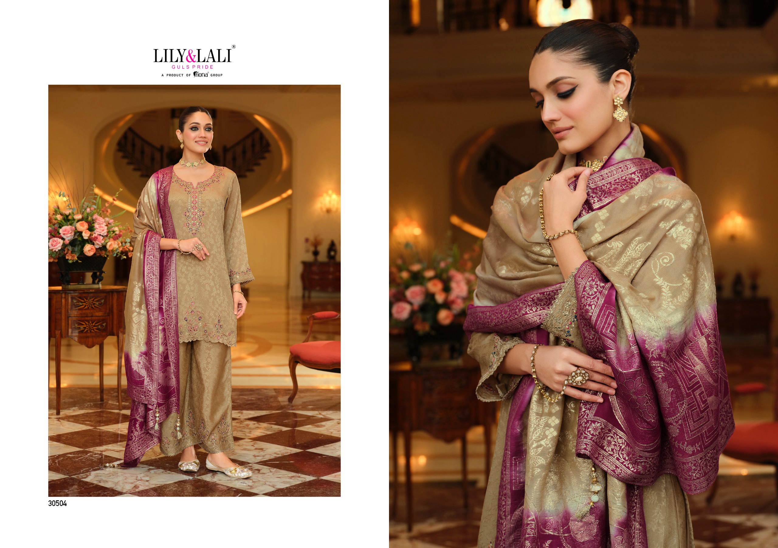 ๐Ÿ›„Bottom๐Ÿ‘– – Self Jacquard Chinon Silk Fabrics work Palazzo