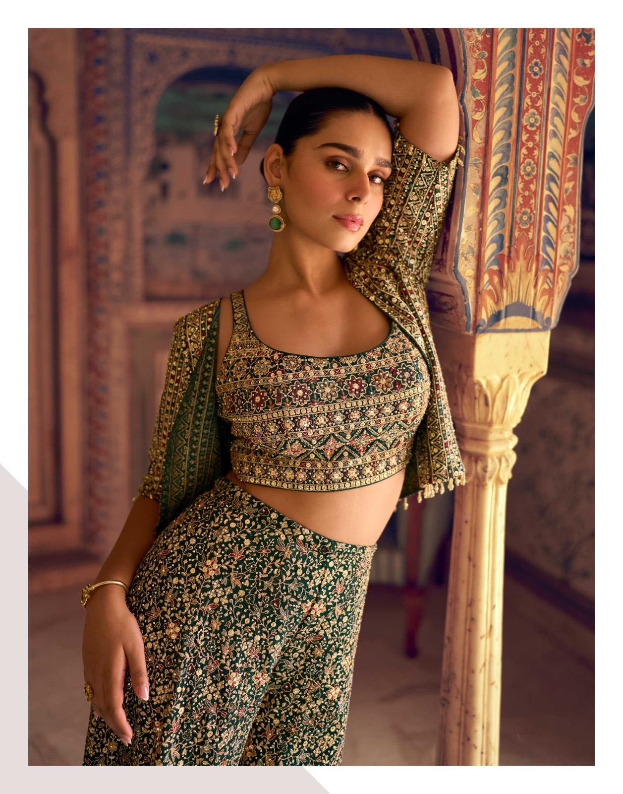 FABRIC – REAL PREMIUM GEROGETTE ( FULL HEAVY LOOK EMBROIDERED SEROSKI ZARKAN FRONT AND BACK PLAZOO WITH EMBROIDERED BLOUSE AND JACKET )
